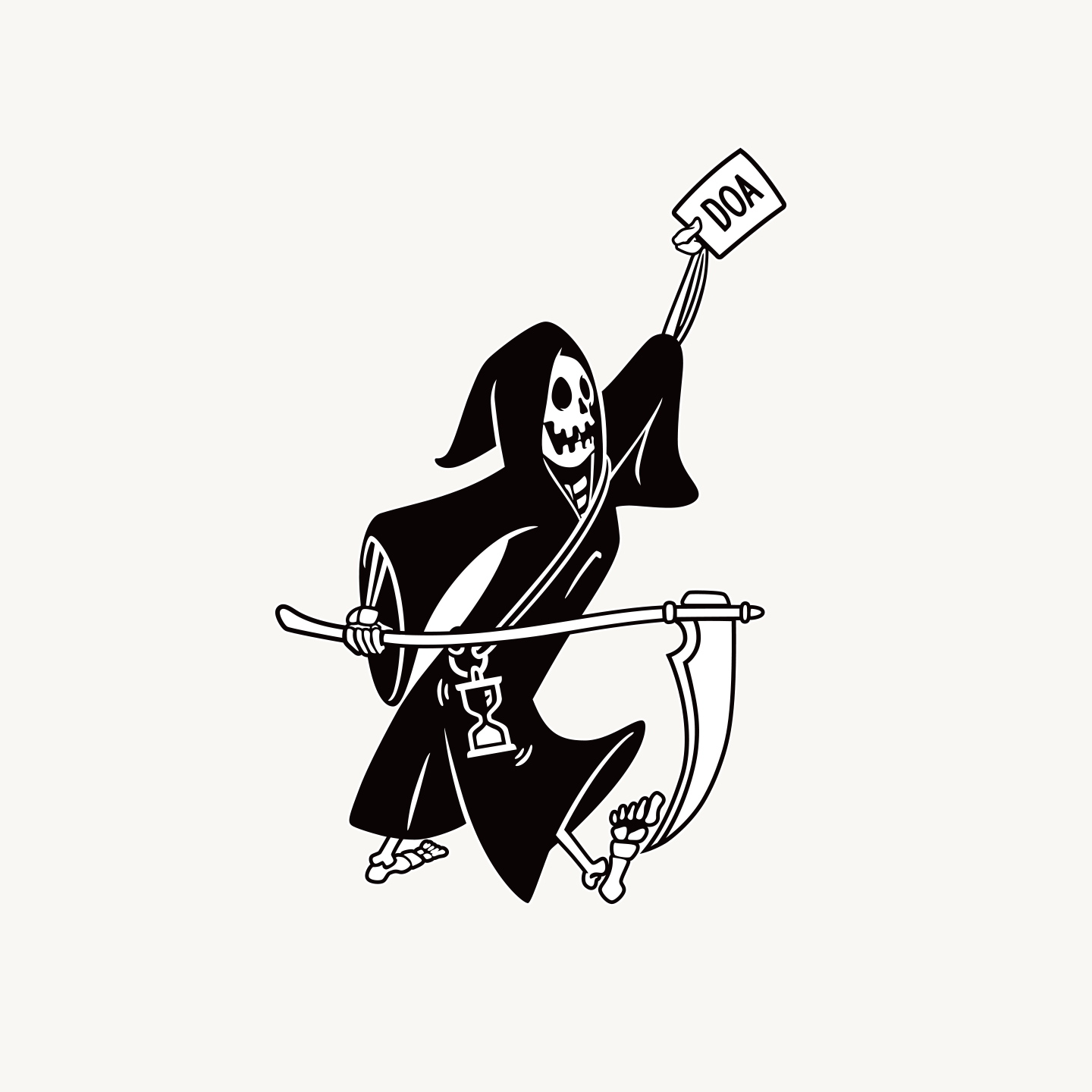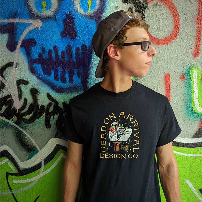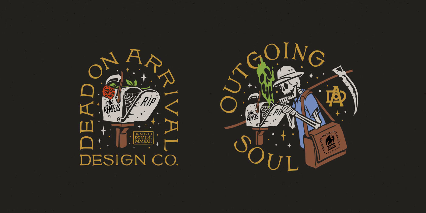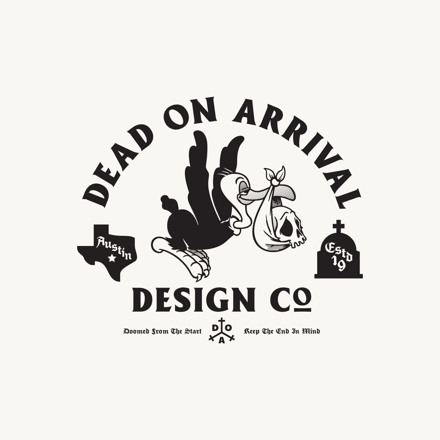 DOA is an ongoing personal creative outlet born from an illustrative itch that wasn't quite being scratched by hand-lettering and obviously spooky scary skeletons and sleazy sneaky devils are fun to draw. The brand is a dark aesthetic that isn't too serious--cynical and a bit existentialist but not without a sense of humor. Think more Zumiez than Hot Topic.