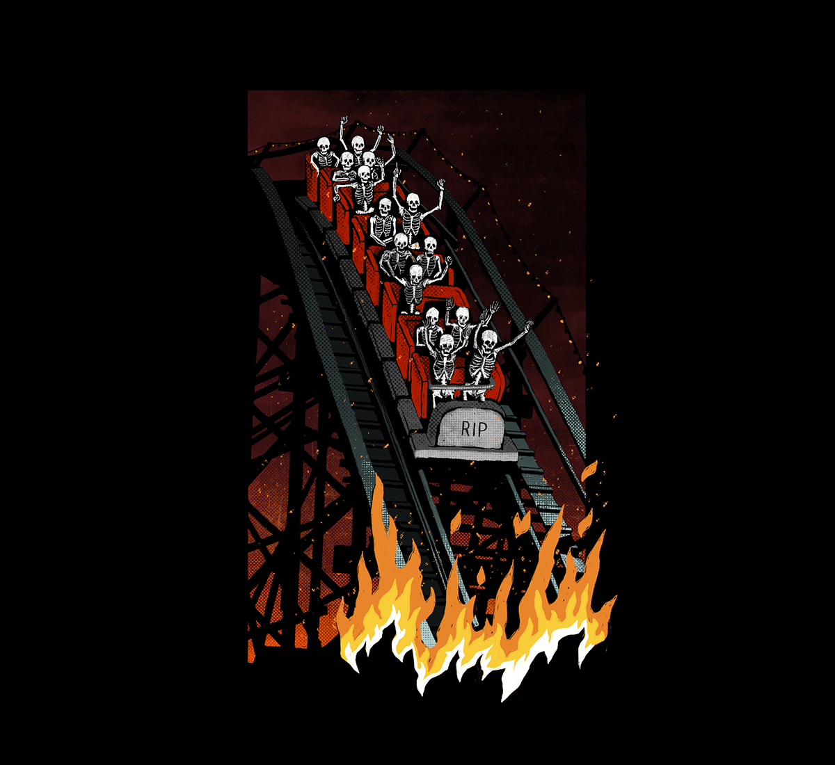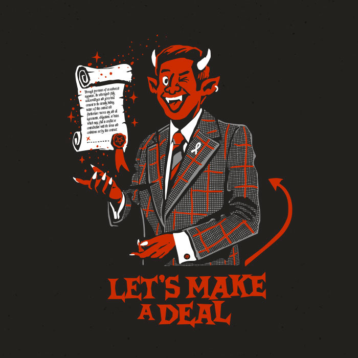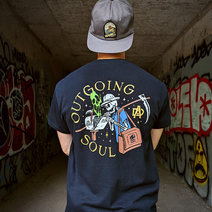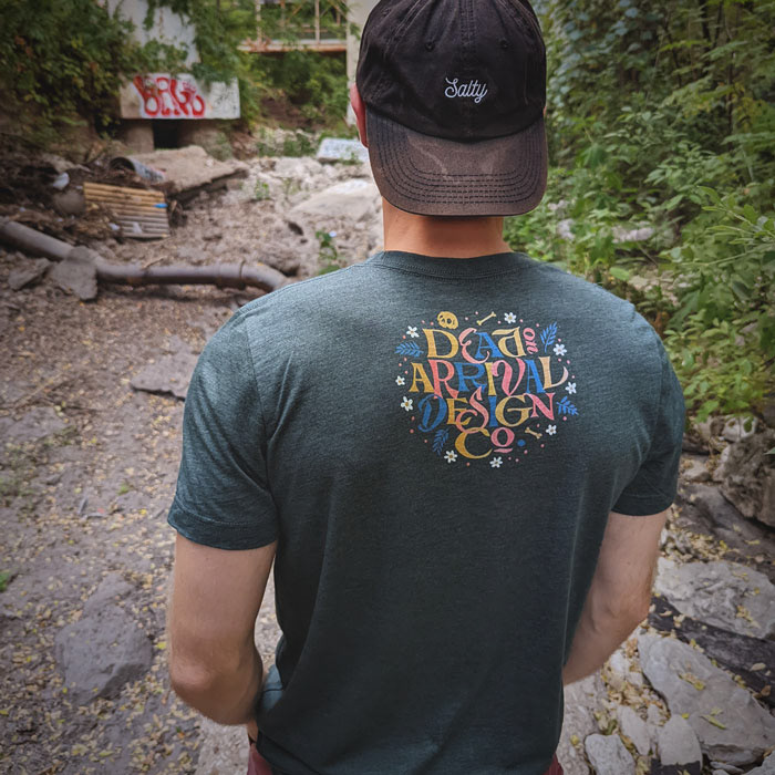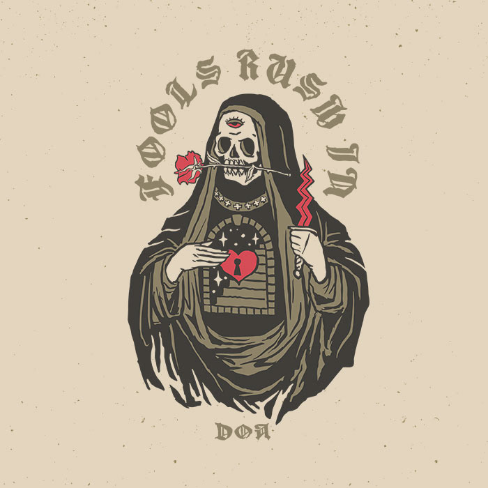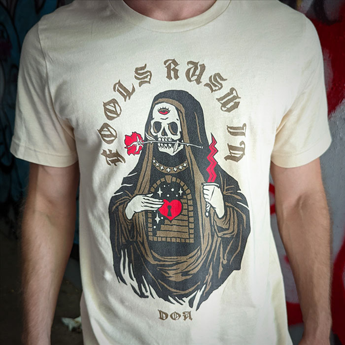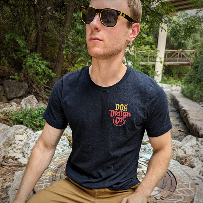 DOA is an ongoing personal creative outlet born from an illustrative itch that wasn't quite being scratched by hand-lettering and obviously spooky scary skeletons and sleazy sneaky devils are fun to draw. The brand is a dark aesthetic that isn't too serious--cynical and a bit existentialist but not without a sense of humor. Think more Zumiez than Hot Topic.