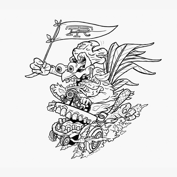 An homage to Rat Fink hot rod art, this bug-eyed beauty was a total hoot to create for the Rooster Teeth core brand. Rendered in Adobe Photoshop.